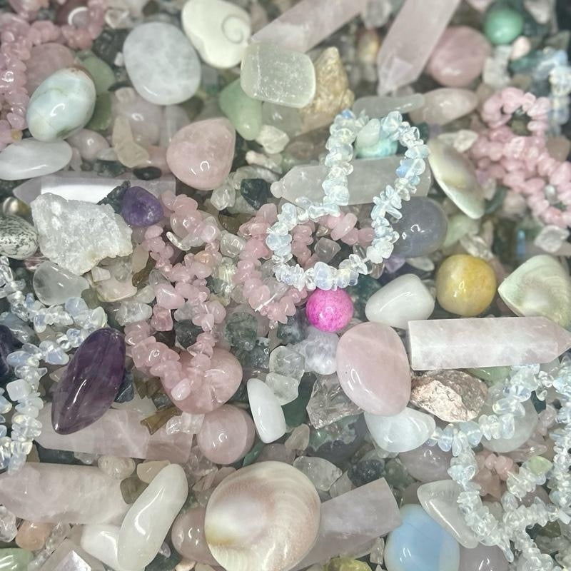The goddess mix is a great way to experience the healing properties of crystals in a surprise mix. The scoop is perfect for those who want to try out the crystals without having to buy a large quantity of them.