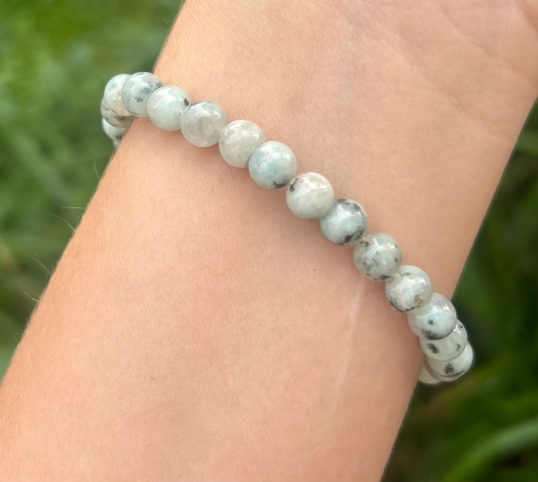 Kiwi Jasper (also called Sesame Jasper—a pale green stone with black, grey, and sometimes pink speckles):