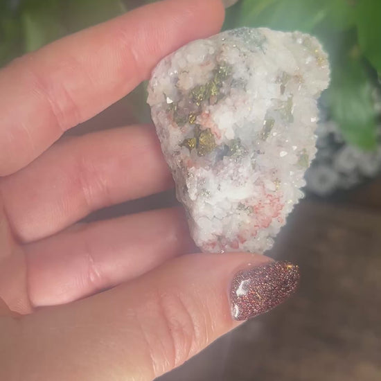 Beautiful mix of Red, White and clear quartz with pyrite and aura pyrite inclusions.
