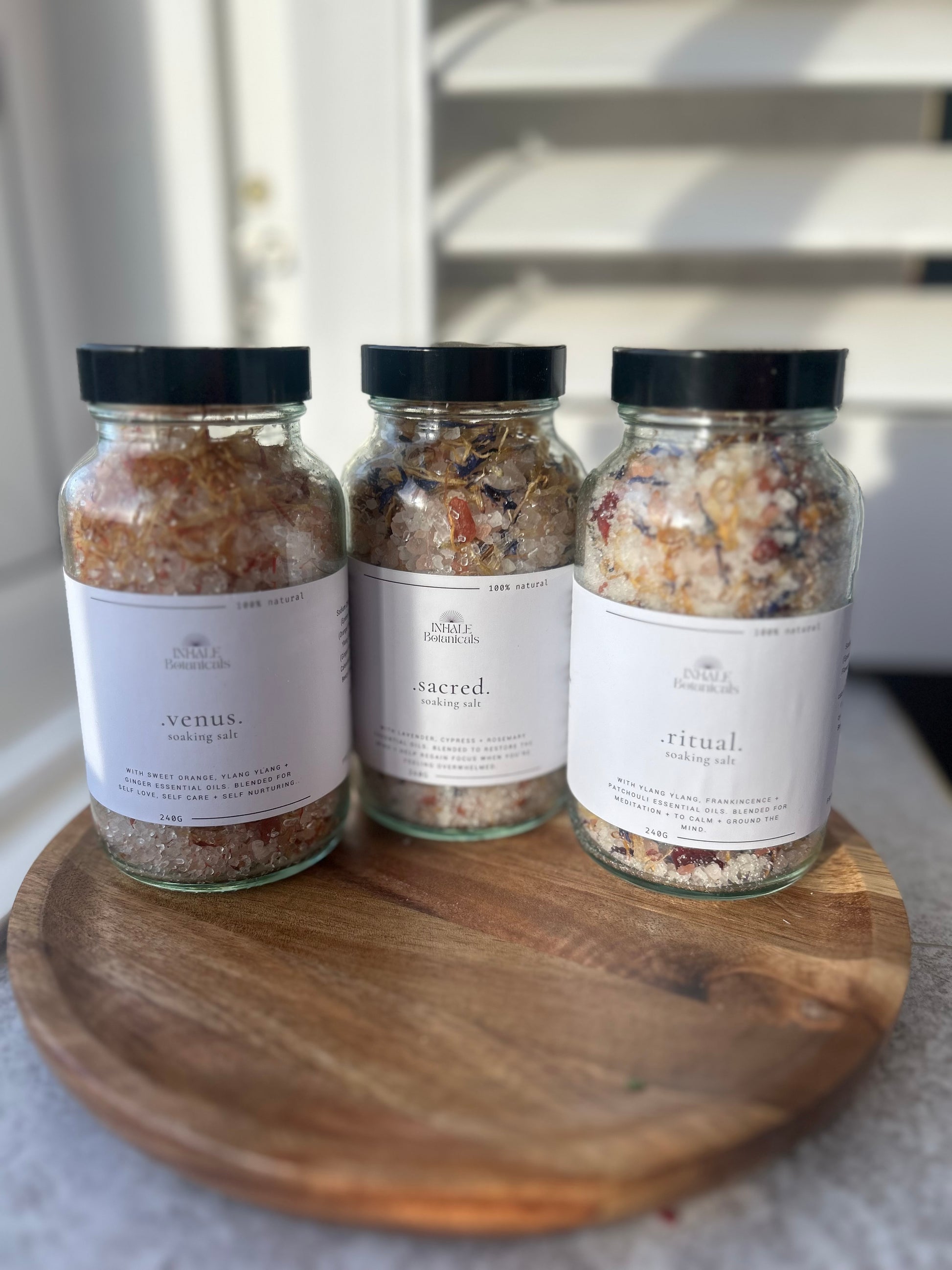 *Epsom Salts* Rich in magnesium, epsom salt is known to ease pain and relieve inflammation, making it beneficial in the treatment of sore muscles, soothing back pain and aching limbs.